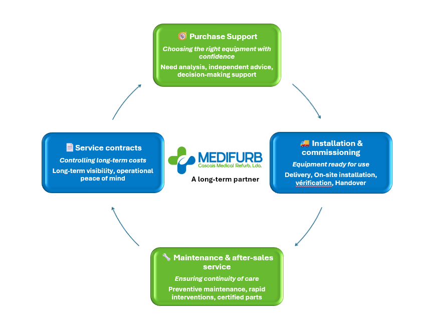 At MEDIFURB, we believe that the performance of medical equipment relies not only on technology, but also on the quality of support throughout its entire lifecycle.
