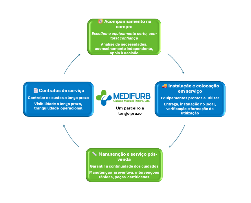 Na MEDIFURB, acreditamos que o desempenho de um equipamento médico não depende apenas da tecnologia, mas também da qualidade do acompanhamento ao longo de todo o seu ciclo de vida.